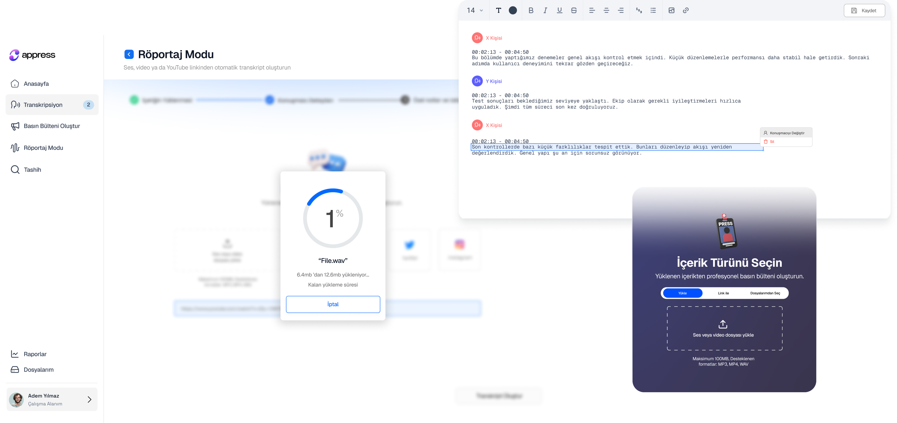 Hayır, Appress AI sadece sesi metne çevirmekle kalmaz, aynı zamanda ham kayıtları haber diline uygun olarak yeniden yazan gelişmiş bir editoryal asistandır.